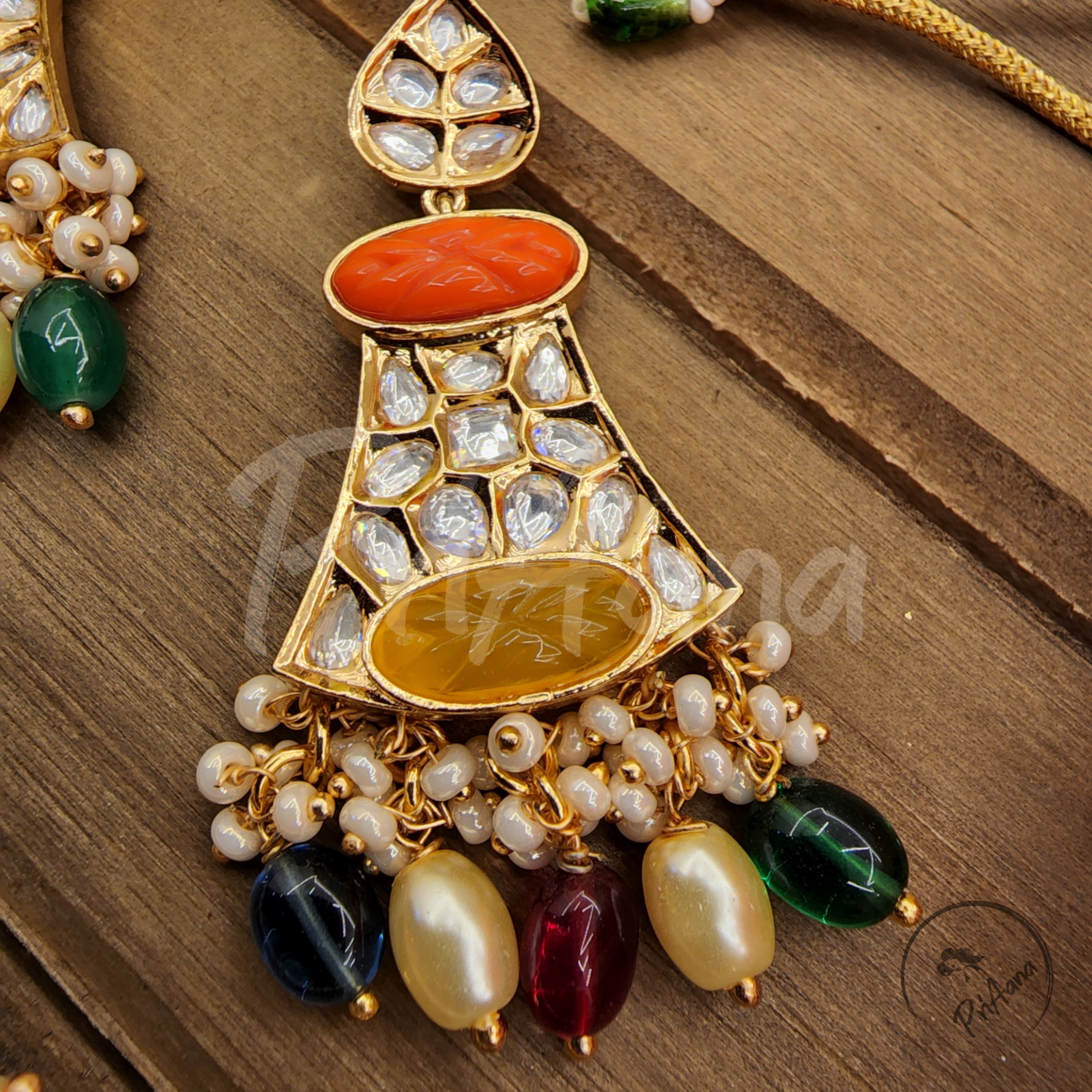 Dridha Tyaani Inspired Kundan with Natural Carved Stone Choker Set